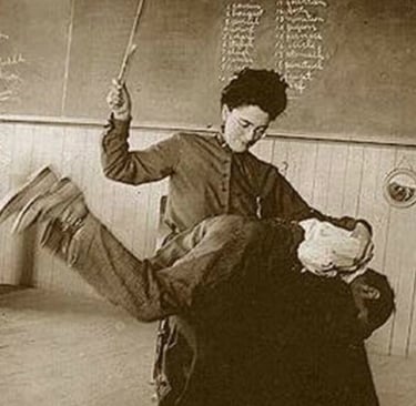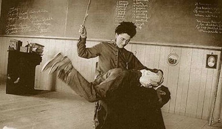 Some examples of positive disciplinary practices are deportment — long stints of holding a book on one’s head for a given time, or through punishment — hand strapping and then being made to write lines, or through religious atonement practices — on the church kneeler for long periods of time saying hail Mary’s.